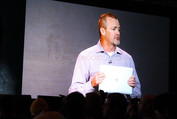 Ebenfalls kurz an einem Ultrabook-Referenzdesign für ein Slider-Modell gezeigt: Die Bezahlung mittels Kreditkarte via NFC und Handy. Auch Will.i.am durfte als "Botschafter für Ultrabooks" ran und noch einen Kalauer mit Anspielung an die wilden 80er loswerden: "Das Ultrabook ist der neue Gettoblaster".