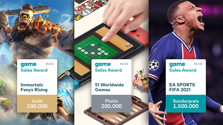 Im Januar 2021 zeichnet der Verband der deutschen Games-Branche game insgesamt drei Spieletitel mit einem game Sales Award für besonders hohe Verkaufserfolge aus. Die Fußballsimulation "FIFA 21" von EA Sports hat es geschafft, die Marke von 1,5 Millionen verkauften Spielen zu knacken. Der neueste Teil der Fußballserie rund um Weltstars wie Ronaldo, Neymar oder Mbappé wird für diesen Erfolg mit seinem insgesamt dritten game Sales Award Sonderpreis ausgezeichnet.