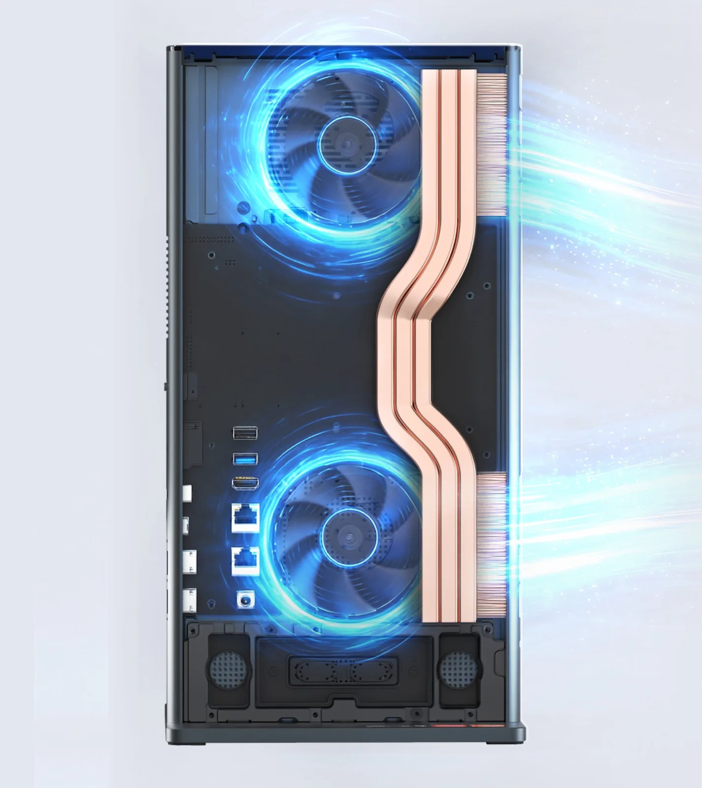 Das bedeutet zwar einerseits, dass der Standfuß nicht durch einen Monitorarm ersetzt werden kann, andererseits kann die Abwärme des Prozessors so aber auch nicht das Display beschädigen. Durch den AMD Ryzen AI Max+ 395 samt integrierter AMD Radeon 8060S verspricht der AidaOne R27 eine starke Performance, und sollte auch die meisten aktuellen Spiele in 1.080p-Auflösung flüssig darstellen können. Der Chip wird mit einer Verlustleistung von 120 Watt betrieben. Um das zu bewältigen verbaut Seaviv ein Kühlsystem mit zwei Lüftern und drei Kupfer-Heatpipes.