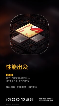 Vivo hat auf dem chinesischen sozialen Netzwerk Weibo die unten eingebetteten Teaser-Bilder veröffentlicht, und damit offiziell bestätigt, dass die iQOO 12-Serie am Dienstag, dem 7. November, offiziell vorgestellt wird. Die Teaser bestätigen, dass das iQOO 12 und das iQOO 12 Pro mit dem brandneuen Qualcomm Snapdragon 8 Gen 3 ausgestattet sind, sowie mit schnellem LPDDR5X-Arbeitsspeicher und UFS 4.0 Flash-Speicher.