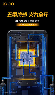 Nun hat iQoo mit weiteren Teasern einige zusätzliche Features des iQoo Z3 bestätigt. Unter anderem kommt das iQoo Z3 mit einer aufwändigen Flüssigkeitskühlsystem, um auch im Gaming-Modus nicht frühzeitig die Performance zu drosseln. Außerdem unterstützt das iQoo Z3 das Vivo eigene "Multi-Turbo 5.0"-Systemtuning, das verschiedene Systemparameter des iQoo Z3 intelligent und smart an die jeweilige Systemlast anpasst.