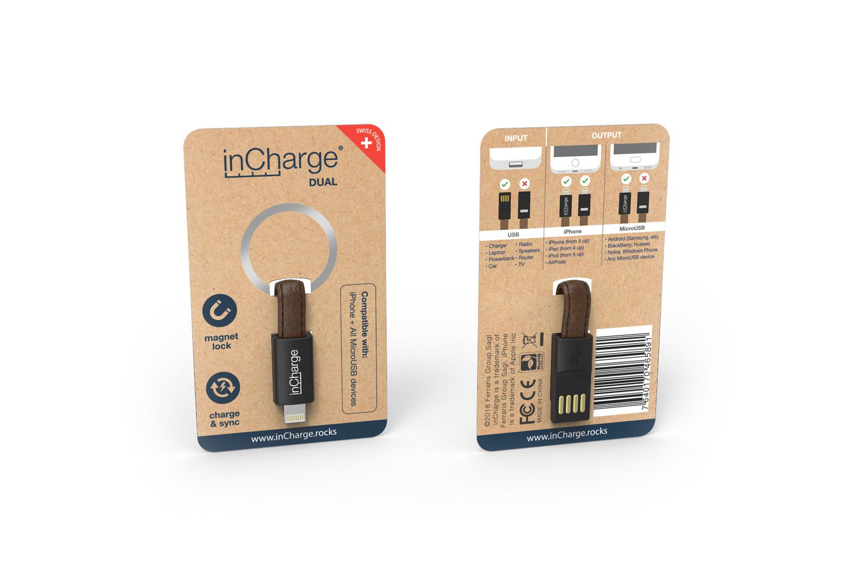 Die Schweizer Ferraris Group Sagl ist ein 2015 in der Schweiz gegründetes Startup, welches mit inCharge bereits ein USB-Kabel für den Schlüsselbund erfolgreich auf den Markt gebracht hat, nun folgt mit inCharge Universal die universell einsetzbare Adapterlösung für alle möglichen USB-Varianten in insgesamt 4 Versionen: