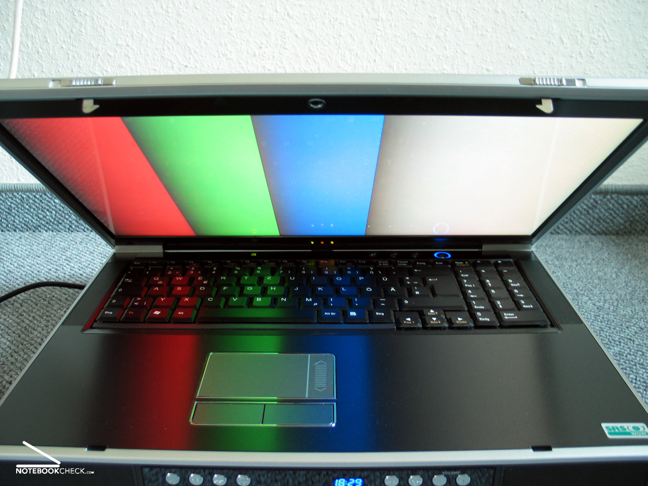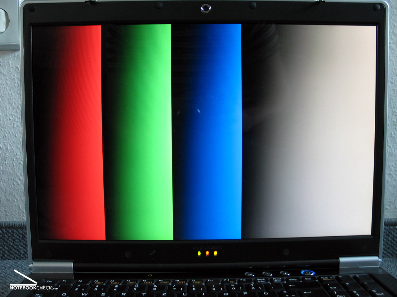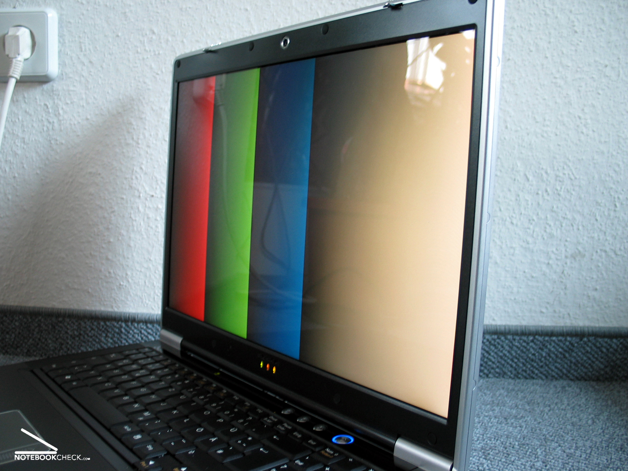 Das 17.1“ WSXGA mit einer Auflösung von bis zu 1680x1050 wirkt nicht nur aufgrund seiner Größe angenehm. Die Oberfläche des Displays spiegelt etwas, bleibt jedoch im akzeptablen Bereich. Die Farbdarstellung wirkt gut, vielleicht etwas zu warm, was sich bei der Farbmessung auch bestätigt.