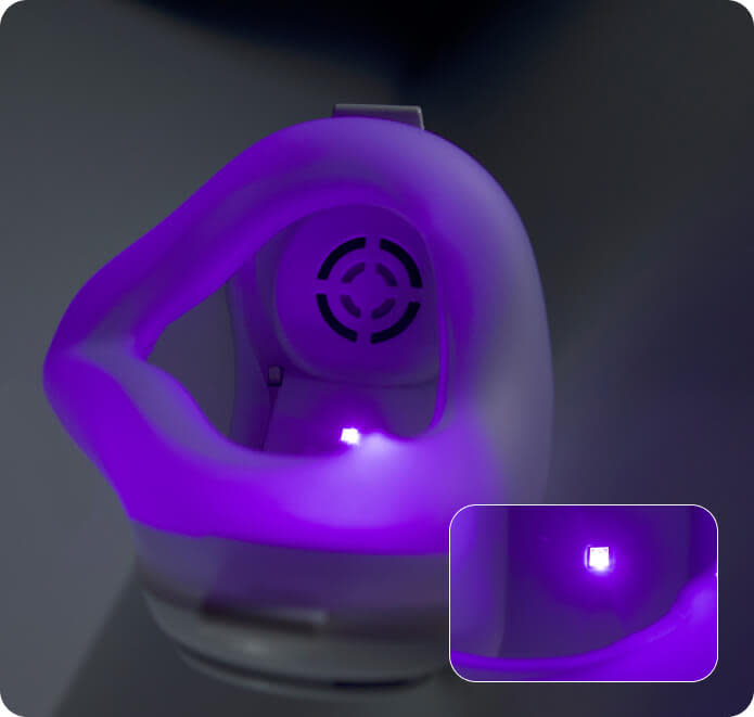 So ist die zweite Maske ergonomischer, komfortabler und leichter geworden als die purME. Damit man sie nicht jedes Mal desinfizieren muss, kann sich die Maske, vor und nach jedem Tragen, selbst durch einen Schalter innerhalb von 5 Minuten mit UV-C-Licht reinigen. Da UV-C-Licht schädlich für die Haut sein kann, wird über einen Sicherheitsmechanismus sichergestellt, dass die Reinigung nicht versehentlich aktiviert wird und auch nur dann läuft, wenn der Nutzer sie benötigt.