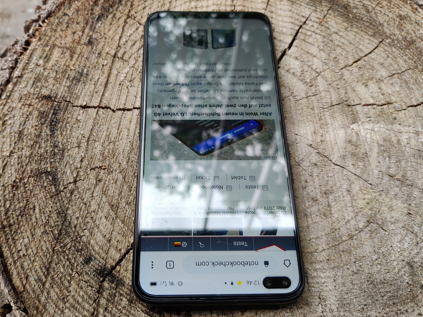 Der Bildschirm des realme 6 Pro besteht aus einem 6,6 Zoll großen IPS-Panel und bietet eine Auflösung von 2.400 x 1.080 Bildpunkten. Die maximale Helligkeit von 419 cd/m² reicht allerdings nur für den untersten Platz in unserem Testfeld. Mit aktiviertem Sensor messen wir eine maximale Helligkeit von 444 cd/m² und im APL50-Test erreicht das realme 6 Pro 417 cd/m². Die niedrigste einstellbare Helligkeit liegt bei 2,34 cd/m².